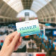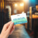 Combinação simples, moderna, azul, verde e branca de cores ombre para o crachá de identificação horizontal, com grande designação e sem foto. É fácil personalizar e personalizar todos os elementos gráficos e texto. Há o endereço de devolução personalizado no verso. Escolha perfeita para muitas empresas.