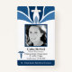 Crachá de identificação médica azul abstrato personalizado com um design de onda legal moderno acima do hospital ou foto do funcionário da clínica. Adicione a sua própria fotografia e informações personalizadas, incluindo o título do trabalho, o nome do departamento, o número de identificação, a data de emissão ou de expiração e o nome e logotipo do recurso médico. Pode ser personalizado com o seu médico pessoal ou código de barras de enfermeiro na parte traseira para mais segurança e acesso.