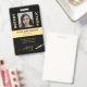 Crachá personalizado preto e dourado com elegante visual de couro preto (IMPRESSO) e roteiro de caligrafia com logotipo caneta, agente notário certificado para assinatura de empréstimo legal, com certificação legal. ++++++++++ Fácil de personalizar com sua foto, seus detalhes e código de bar em ambos os lados.