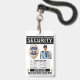 Crachá de ID de Guarda de Segurança personalizado moderno e profissional. Adicione qualquer nome de funcionário, foto, cor do cabelo, cor do olho, altura, peso, ID do crachá, código de barras e muito mais!
