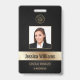 Personalize facilmente este crachá de identificação de foto de funcionário preto e ouro com estilo de luxo profissional com seus detalhes personalizados.
