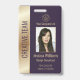 Personalize facilmente este crachá de identificação de fotos de funcionários roxos com estilo de luxo profissional, ouro e roxo, com seus detalhes personalizados.