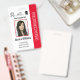 Personalize facilmente este crachá de identificação de foto profissional de funcionário do estilo vermelho moderno com seus detalhes personalizados.