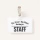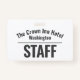 Funcionarios De Hotel Chamado crachá De Identidade. Design simples mostrando o nome e a localização do hotel, além da palavra "FUNCIONARIOS" grande e ousado no verso. crachá de identidade uniforme de funcionarios para funcionários de hotel. Carregar a sua identidade marca através da roupa dos trabalhadores hoteleiros. Também perfeito para bares e bares. O nome do hotel está curvo.