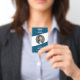 Personalize esta identificação fazendo upload de sua foto e complete com seu logotipo e dados da empresa. Você pode personalizar a cor, tamanho da fonte, etc.