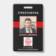 Identifique-se facilmente e ao seu bombeiro na estação com essa badge de identificação personalizada da bandeira da linha vermelha fina com foto, logotipo, código de barras, para carteirinha de identificação de bombeiros. Personalize com foto do bombeiro, nome, número de identificação e departamento de bombeiros. Personalize a parte de trás com o logotipo da sua estação de bombeiros e código de barras, ou qualquer outra informação. Essa badge de identificação de bombeiro da linha vermelha fina é perfeita para todos os bombeiros, bombeiros voluntários, bombeiros, chefe, capitão e tenente. DIREITOS AUTORAIS © 2020 Judy Burrows, Black Dog Art - Todos os Direitos Reservados. Identificação de Bombeiro Foto Personalizada Badge de Identificação de Carteirinha de Bombeiro