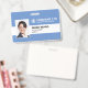 Um moderno crachá de identificação de funcionário horizontal com foto do funcionário, nome e cargo, bem como logotipo, nome e slogan da empresa. Se você deseja alterar a cor do crachá de identificação corporativo, basta clicar em "personalizar este modelo" e, em seguida, rolar para baixo até encontrar "clique para personalizar ainda mais" para acessar a ferramenta de design. Aqui você tem a capacidade de alterar a cor de todos os elementos de design e fontes.