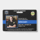 Identifique-se facilmente a si mesmo e ao seu policial no departamento de polícia com estes crachás personalizados de fotografia, logotipo, código de bar, cartão de identificação da polícia com a bandeira azul fina. Personalize com foto do policial, nome, número do crachá, detalhes e departamento de polícia. Personalize com o logotipo, o selo e o código de barras da sua delegacia. Este crachá de cartão de identificação policial de linha azul é perfeito para todos os policiais, polícias, sargento, chefe, capitão e tenente. COPYRIGHT © 2020 Judy Burrows, Black Dog Art - Todos Os Direitos Reservados. Crachá de identificação personalizado do Bombeiro de Fotografia