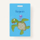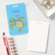 Crachá Ilustração animada feliz da tartaruga verde-branca