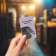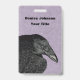 Este nome ou crachá de identificação é um roxo claro com uma ilustração da cabeça e asa de um corvo preto. Personalize seu nome e informações com os modelos.