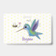 Este design fofo apresenta um beija-flor feliz verde e roxo com um amigo abelha em um fundo amarelo com bolinhas. Tudo feito em estilo de ilustração de desenho animado feliz!