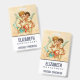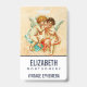 Nome crachá com um par de querubim anjinho doce com asas brancas e macia e vestidos em roupas diafanosas. Um sussurrando silenciosamente no outro ouvido. Preparado para uma antiga vintage com o passado.