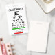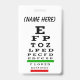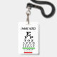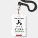 Crachá com tabela de olhos para óticos, optometristas e oftalmologistas. Artista recriou a tabela de olhos em cores tradicionais.