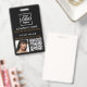 Um moderno crachá de negócios minimalista personalizado com logotipo de negócios, código QR e foto. Personalize com seu logotipo, código QR, foto e detalhes para criar seu próprio crachá de negócios elegante, preto e branco. Personalize ainda mais com um fundo ou fonte de cor personalizados.