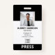 Crachá simples e moderno de profissionais da imprensa com fotografia.