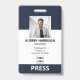Crachá simples e moderno de profissionais da imprensa com fotografia.