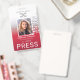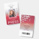 Combinação moderna, vermelha sombria, cinza clara e cor branca: crachá de ID vertical, com personalização: foto, nome do funcionário, nome da empresa, logotipo, cargo, ID, designação, código de bar e todas as outras informações. É fácil personalizar e personalizar todos os elementos gráficos e texto. Há o endereço de devolução personalizado no verso. Escolha perfeita para a imprensa, jornalista, jornal e muitos outros.