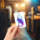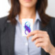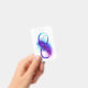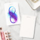 Símbolo do infinito com uma bela pena pintada em cores vibrantes roxo e azul sobre um fundo branco.