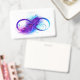 Símbolo do infinito com uma bela pena pintada em cores vibrantes roxo e azul sobre um fundo branco.