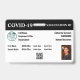 Certifique-se de que sua equipe use seus cartões de identificação de vacinação contra a covid-19 que exibem seus dados, a data da primeira e segunda vacinação contra o coronavírus, bem como o tipo de vacina administrada. Seu tipo sanguíneo, data de nascimento e dados da empresa também estão no verso, bem como o logotipo da sua empresa e a fotografia de seus funcionários. Um motivo com uma pessoa recebendo uma injeção administrada por uma enfermeira usando máscara facial aparece na borda inferior ao lado do logotipo corporativo ou código de barras.