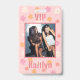 Ingresso VIP Retro Pink Daisy para Despedida de Solteira e Damas de Honra. Prepare-se para uma festa de despedida de solteira com este cordão de identificação VIP personalizado! Mostre o nome da noiva e "babe" em uma fonte negrito retrô na frente. A parte de trás do cordão apresenta "VIP" e o nome e foto da amiga. O cordão VIP é uma ótima lembrança da despedida de solteira.