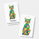 Um gato com um padrão semelhante a tartaruga com pelo arco-íris. Há espaço para um nome personalizado. O título de "Senhora Profissional de Gatos" também pode ser alterado.