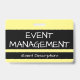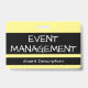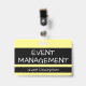 Este humilde design de insígnia apresenta a mensagem "GESTÃO DE EVENTOS". Uma insígnia como esta poderia ser usada para identificar que o portador é um oficial em um evento. [~Z0000307]