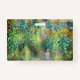 Crachá com a pintura a óleo de Claude Monet O Jardim do Artista em Vétheuil (1880). Os girassóis e outras lindas flores azuis e vermelhas fazem um percurso no jardim onde as crianças estão dando um passeio agradável. Um presente de excelente para fãs do impressionismo e da arte francesa.
