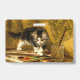 Crachá com a pintura a óleo de Henriëtte Ronner-Knip The Young Artist (1821-1909). Um gatinho preto e branco brinca com pintura e dois pincéis. Um presente adorável para amantes de gatos e entusiastas do Romantismo.