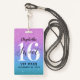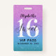 Uma maneira inteligente de convidar seus convidados para sua doce festa de aniversário 16. Esses convites de crachá de aprovação de 16 VIP, suaves e azuis, roxos e brilhantes, personalizados, impressionam seus convidados. Design apresenta o número 16 em um fundo brilhante com uma fonte moderna de escrita manual. Personalize facilmente a parte de trás desta modelo para a sua doce 16 festas de aniversário. Os designs são ilustrações/gráficos impressos planos. Não é utilizada qualquer brilho real. Projetado para você pelo Blackberry Boulevard.
