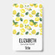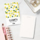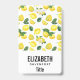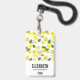 Nome personalizado crachá com um padrão fofo de limões amarelos com folhas verdes e fatias frescas de limão cortado.