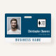 Crachá de funcionários do escritório com um design minimalista limpo em azul e branco. Adicione uma foto do funcionário junto com o nome e a profissão. Personalize ainda mais com o logotipo de sua empresa e o nome da empresa.