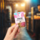 Um nome de etiqueta com uma flor branca e rosa vibrante. Fechar a fotografia desta flor encantadora realmente atrai sua atenção.