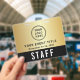 Elevate your event with this custom black and gold access pass badge featuring logo branding and QR code functionality, designed for both professionalism and seamless access management. The front showcases your logo and event title in a clean, high-visibility layout, while the bold “STAFF” (or "CREW," "VIP," "VENDOR," etc.) designation ensures instant recognition from a distance. On the back, an optional large QR code provides a modern solution for check-ins, credentials, schedules, or access control -- making this badge as functional as it is stylish. Perfect for corporate events, conferences, productions, and large-scale gatherings, this badge helps your team stay organized while reinforcing a polished, cohesive brand presence.