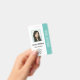 Personalize facilmente este crachá básico de identificação de fotos de funcionários profissionais turquesa com seus detalhes personalizados.