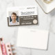 O crachá básico de entrada de recursos castanho e branco com texto em negrito é ideal para o espaço livre específico do departamento. Carregue facilmente vários logotipos e uma foto de funcionário. Isso pode ficar em um pátio correspondente que também tem um cartão-chave da empresa. Este crachá da empresa é perfeito para engenharia, assistência médica ou instalações de polícia onde a identificação de funcionarios é importante. Ideal para edifícios de governo onde os empregados têm diferentes habilitações.