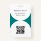 Um fundo colorido com forma de arco branco. Texto preto. Adicione o logotipo da sua empresa, uma foto, nome e título. Voltar: Adicione o nome da empresa, o endereço e adicione o URL do site ao código QR.