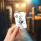 Um Crachá de identificação de pessoal profissional e moderno concebido para a identificação e segurança de funcionarios corporativos. Este crachá apresenta um layout retangular elegante com um design limpo e minimalista em uma paleta de cores corporativa. Código QR, localizado na parte inferior do crachá, verificável para acesso rápido a dados de funcionários, sistemas de presença ou credenciais digitais.