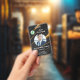 Um Crachá de identificação de pessoal profissional e moderno concebido para a identificação e segurança de funcionarios corporativos. Este crachá apresenta um layout retangular elegante com um design limpo e minimalista em uma paleta de cores corporativa. Código QR, localizado na parte inferior do crachá, verificável para acesso rápido a dados de funcionários, sistemas de presença ou credenciais digitais.