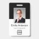 Personalize facilmente este nome de funcionário preto personalizado e o crachá de fotos com o logotipo da sua própria empresa e o código qr ou o código do bar. Disponível com diferentes cores e anexos de fundo. Nenhuma quantidade mínima da ordem.