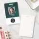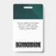 Um design clássico geométrico verde para aquele visual profissional. Personalize este crachá com o logotipo da sua empresa com um código de barras na parte de trás com suas informações adicionais.