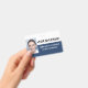 Este crachá de funcionário com foto, logotipo e estilo azul escuro é facilmente personalizável com seu logotipo, nome, cargo e foto. Você pode adicionar mais informações no verso.