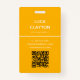 Crachá de fotos moderno e profissional apresentando sua foto em um círculo com tipografia minimalista da tendência. Na parte traseira está o espaço para informações de contato, site ou mídia social, assim como seu logotipo personalizado ou código QR. Esta é a versão em negrito amarelo alaranjado.