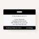 Mantenha seu hospital ou prática médica segura com crachás de identificação personalizados horizontais com foto, nome, abreviação profissional e título de trabalho do funcionário, número de identificação, logotipo de empresa e nome. Você também pode incluir um departamento, se quiser. Perfeito para enfermeiras e outros funcionarios. Na parte traseira, você pode adicionar mais informações, como por exemplo, onde devolver o crachá se ele se perder. Personalize-o com uma foto, qualquer logotipo de forma e texto personalizado na barra lateral. A foto quadrada à esquerda tem uma fina borda branca rodeada por faixas pretas no topo e no fundo e linhas pretas finas pelos lados. Um bloco branco no lado direito central destaca o logotipo, o título do job, o número de ID e a data de expiração em texto preto. O nome do funcionarios, as iniciais do trabalho e o texto do hospital ou do negócio são brancos a preto. Você pode alterar o plano de fundo e as cores do texto para corresponder à sua marca, clicando em "clicar para personalizar ainda mais". Você também pode adicionar um clipe de metal, um jardim ou um anexo retrátil na barra lateral. Veja mais crachás de ID na coleção Rocklawn Arts. Copyright ©Claire E. Skinner. Todos os direitos reservados.