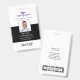 Adicione os detalhes dos seus funcionários nestes crachás de pessoal médico com a foto e o nome deles. Também estão disponíveis campos para inserir o nome do seu hospital ou centro de saúde, cargo e abreviação, número de identificação do funcionário. Adicione seu logotipo e o cargo ou função do funcionário em textos em negrito para fácil identificação. Personalize com um código de barras no verso, se necessário, juntamente com as informações do endereço de devolução, incluindo o número de telefone do seu estabelecimento.