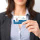 Adicione os detalhes dos seus funcionários nestes crachás de pessoal médico com a foto e o nome deles. Também estão disponíveis campos para inserir o nome do seu hospital ou centro de saúde, cargo e abreviação, número de identificação do funcionário. Adicione seu logotipo e o cargo ou função do funcionário em negrito para fácil identificação. Personalize com um código de barras no verso, se necessário, juntamente com as informações de endereço de devolução, incluindo o número de telefone do seu estabelecimento.