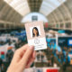 Este simples e elegante Crachá de Nome de Funcionário Personalizado apresenta uma fotografia, um código de bar e um logotipo de negócio em branco e rosa-claro. Facilmente personalizável.