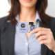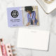 Crie crachás de negócios de funcionários de logotipo simples e moderno com sua foto e logotipo. Tipografia legível e limpa. Basta substituir o logotipo e a foto da amostra.