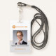 Crie seus próprios crachás personalizados de identificação de funcionários com este design profissional que apresenta modelos para seu logotipo, foto do funcionário, nome e título na frente. As informações de contato de segurança e modelos de código de bar estão na parte traseira. Este design moderno apresenta uma imagem de cinza, bem como cores de sotaque laranja e cinza.