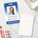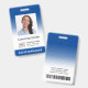 Faça upload de seu próprio logotipo e foto e crie crachás personalizados e crachás de identificação de funcionários para sua empresa. Modelo fácil de usar. Você pode redimensionar a foto, o logotipo e o código de barras com a ferramenta de design. Para redimensionar a foto, você precisa primeiro desmascará-la. Fontes e cores, exceto a parte branca do gradiente, são personalizáveis.